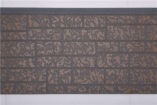 石頭紋金屬雕花板特點:裝飾性強更多選擇,為了提供給客戶更大的選擇空間,我們推出了百余種浮雕花紋和色彩的搭配組合,給予建筑設計更大的發揮空間。豪華美觀的裝飾效果,使建筑突顯檔次與品位。簡便靈活的拆裝方式,使墻面設計搭配的更換輕而易舉。還可以根據特殊客戶的要求制定顏色。多種顏色和浮雕花紋的外墻保溫裝飾一體板可以搭配使用,構成匠心獨運、變化多端的風格組合。